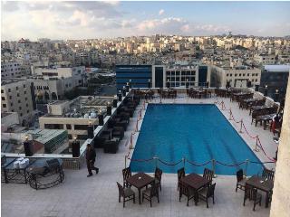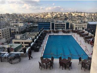L hôtel est situé dans le centre-ville d Amman, à seulement 20 km de l aéroport d Amman. Toutes les chambres sont spacieuses et décorées dans un style classique et offrent les services nécessaires qui feront de votre séjour un succès. Parmi ces services, nous pouvons trouver de l air conditionné, chauffage, TV et salle de bains privative. L hôtel dispose également de trois grandes chambres spécialisées dans l événement, avec une capacité de jusqu à 400 personnes. Un des points forts de l hôtel est sa magnifique piscine sur le toit d où vous pourrez profiter de belles vues sur la ville.